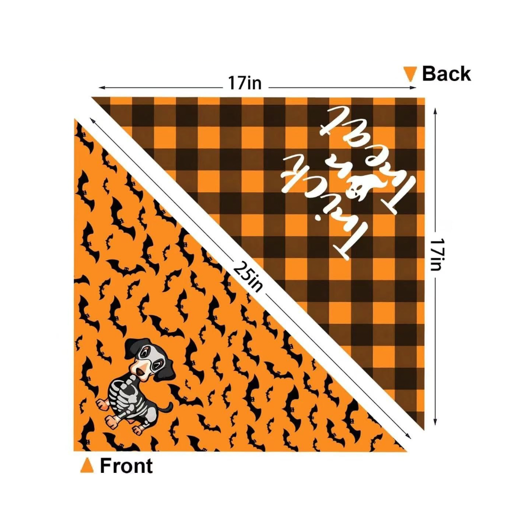 - HALLOWEEN PATTERN DESIGN: Two dog Halloween bandanas feature classic Halloween colors - Orange & Purple and pumpkin bat ghost pattern.